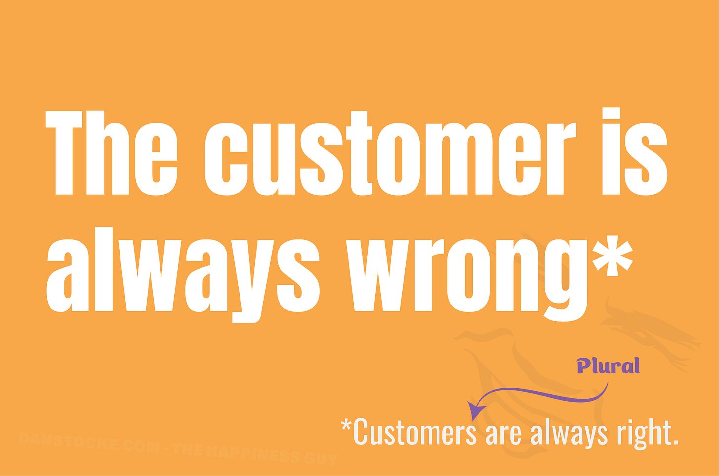I would suggest the offending phrase be tweaked. Rather than “the customer (singular) is always right” the sentiment should be “the customers (plural) are always right”. This simple adjustment takes power away from any one customer from making an ass of themselves on your showroom floor.